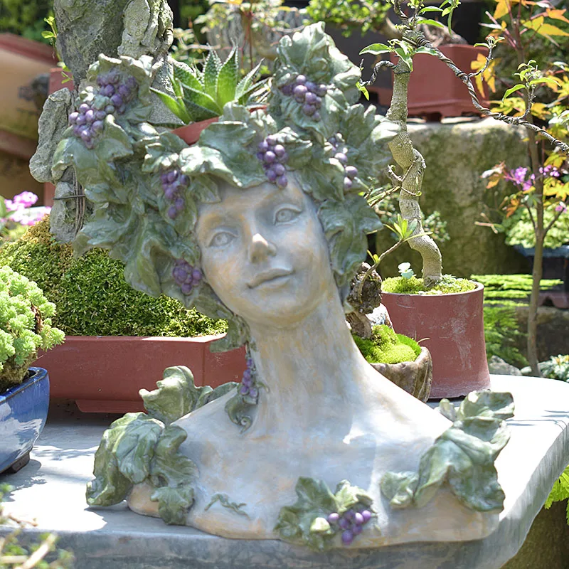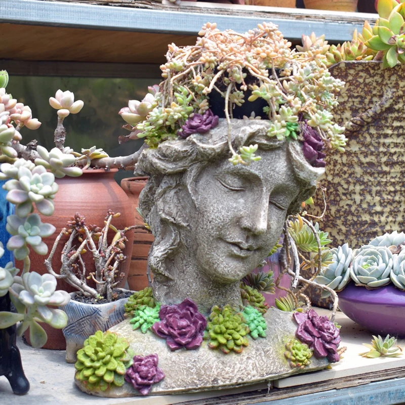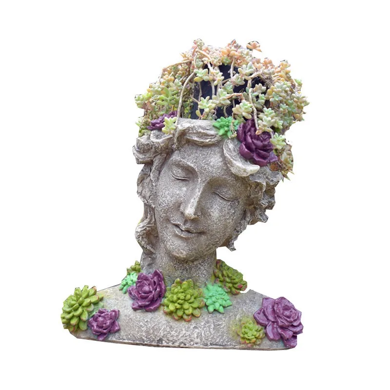 Big Discount American Country Style Cute Ornament Grape Succulents Beauty Girl Flower Pot Resin Human Face Arts